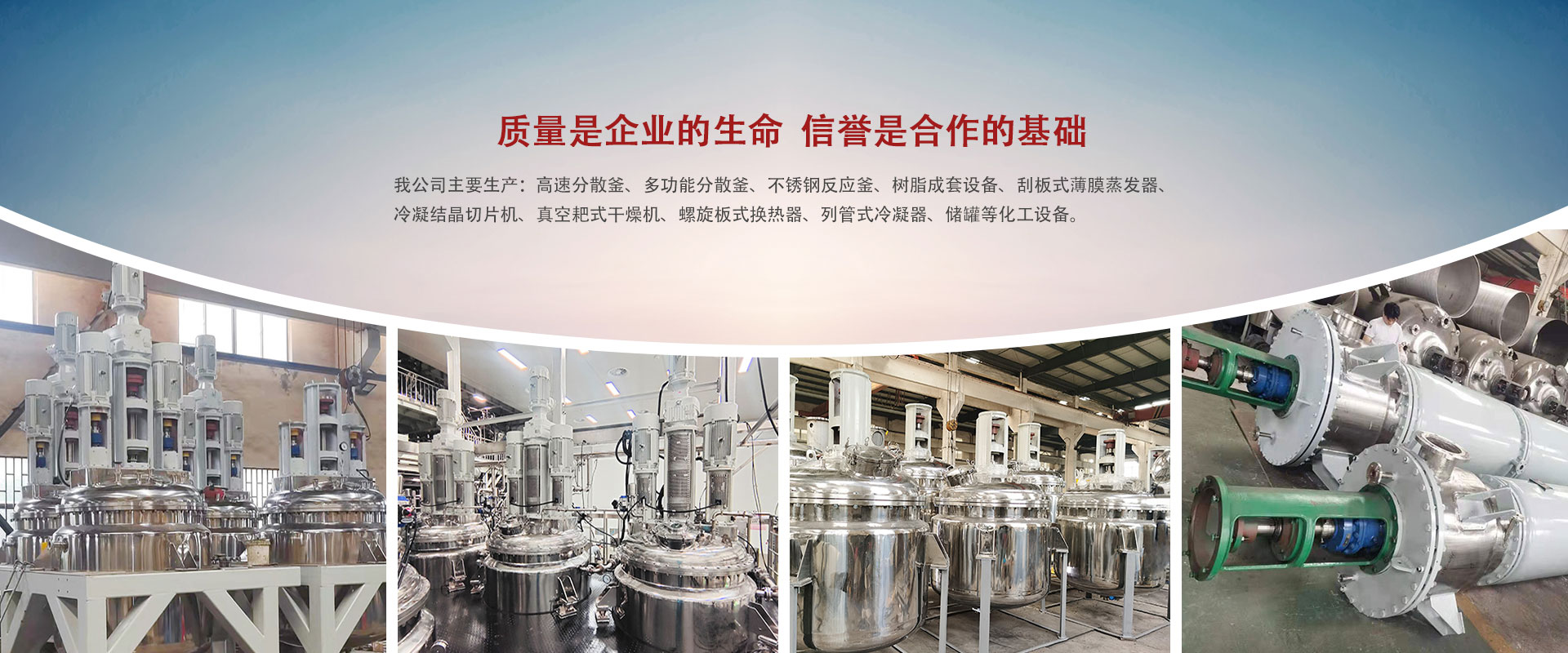 我公司主要生產(chǎn):高速分散釜、多功能分散釜、不銹鋼反應釜、樹脂成套設備、刮板式薄膜蒸發(fā)器、冷凝結晶切片機、真空耙式干燥機、螺旋板式換熱器、列管式冷凝器、儲罐等化工設備。